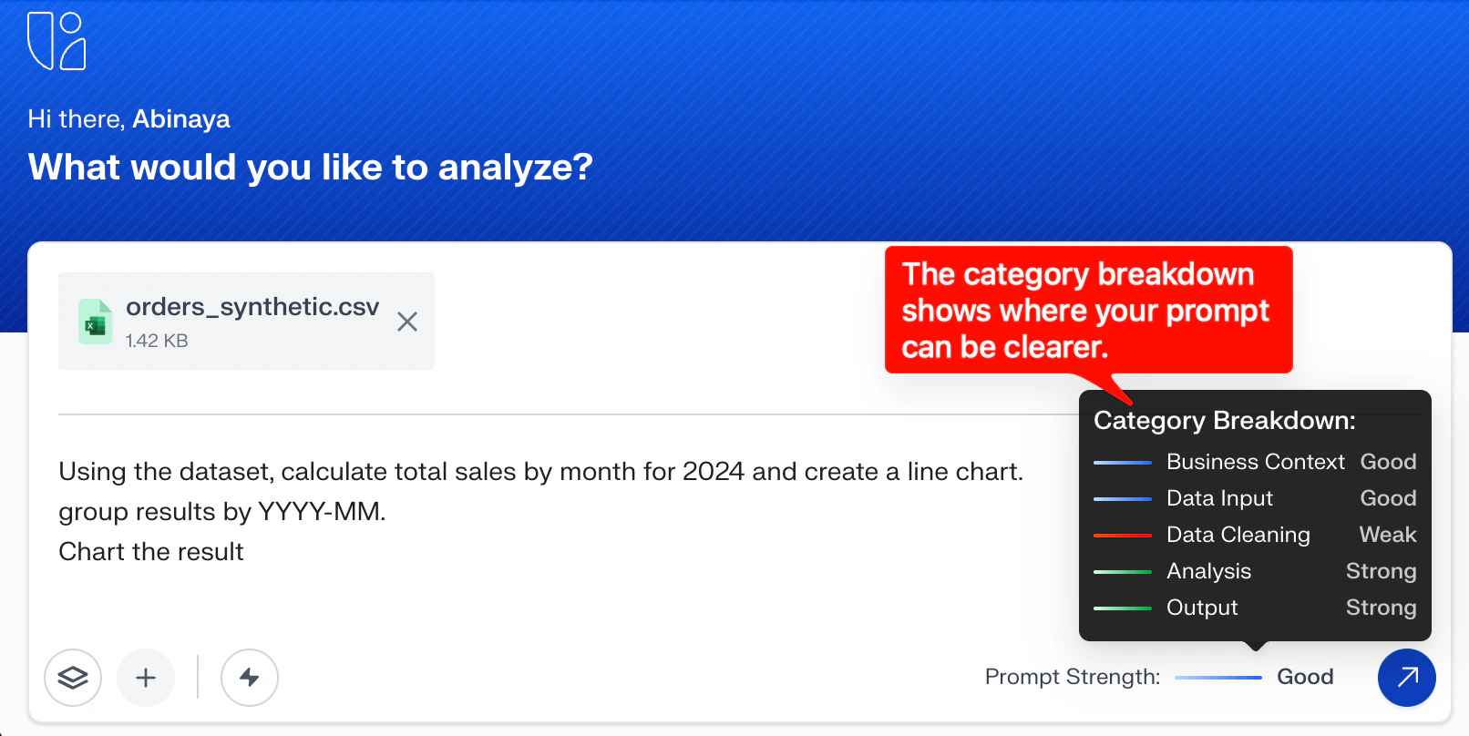 aidnn shows how strong or clear your prompt is, helping you improve it if needed.\