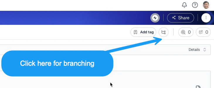 - Then click on the branching icon on the right top corner.