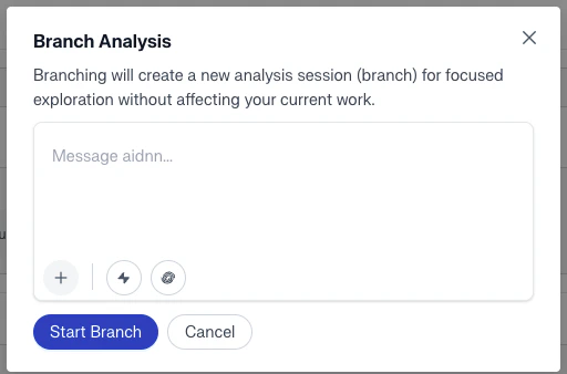Type your question or analysis request in plain English. This becomes the starting point of your notebook. -