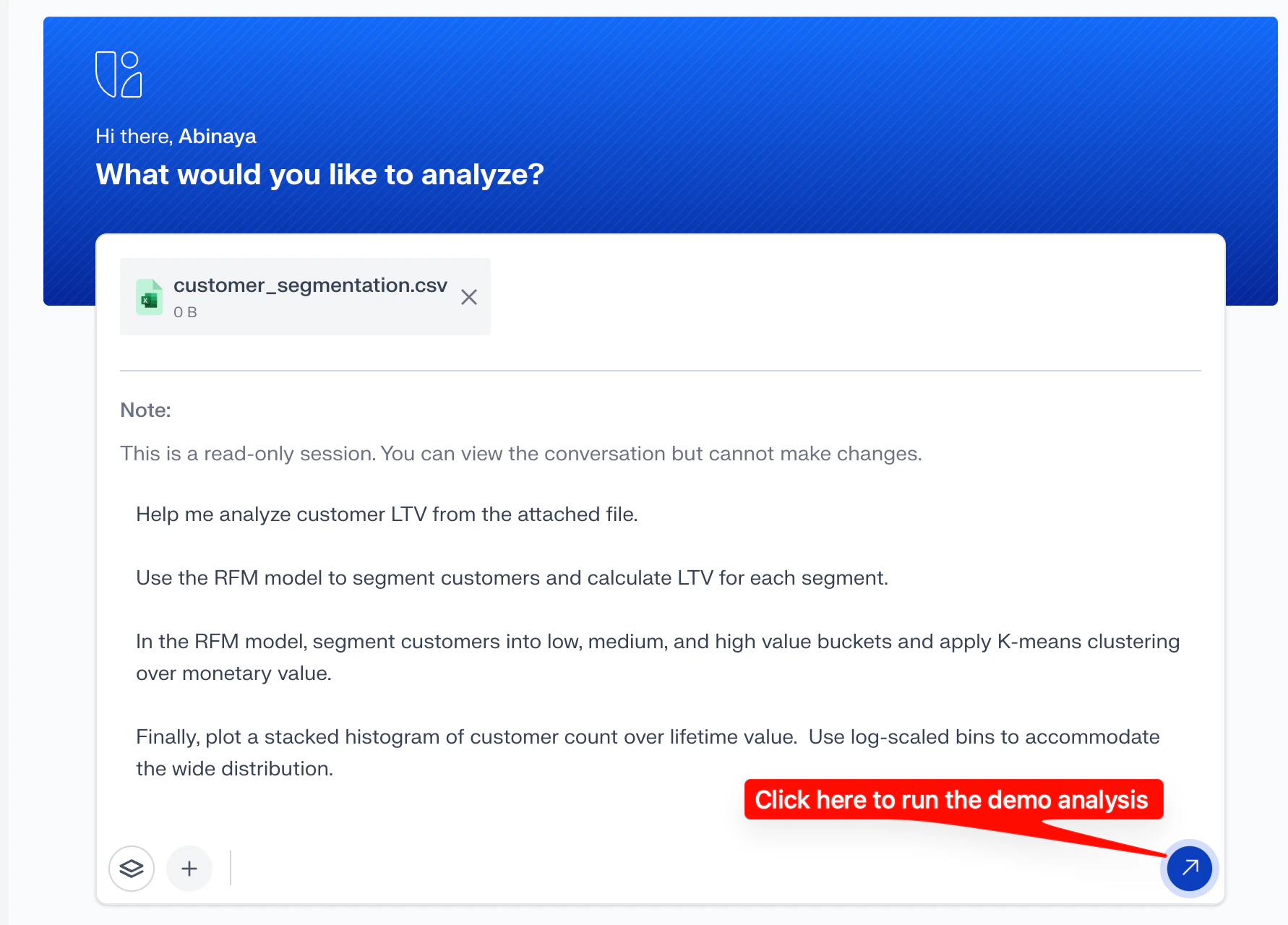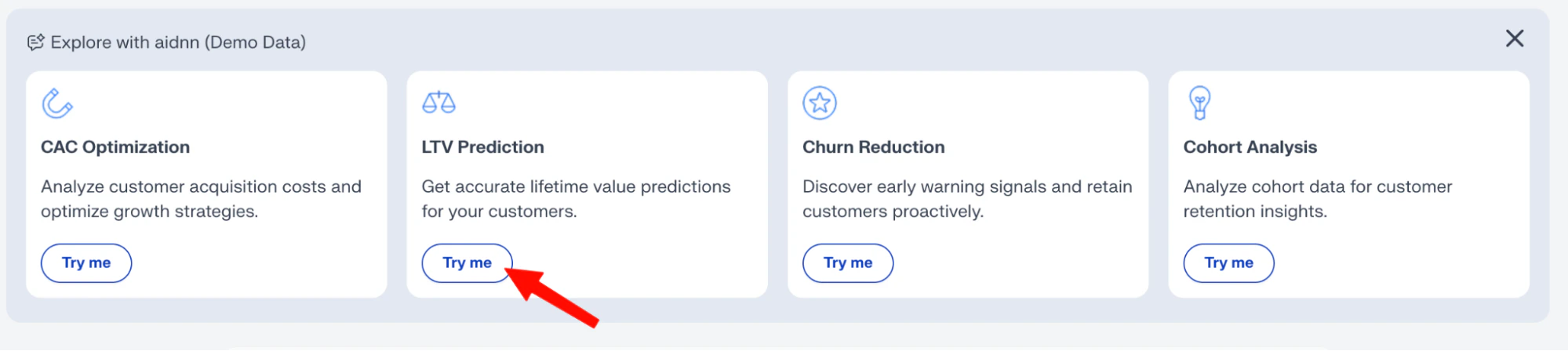 At the top of the page, you’ll see ready-to-use analysis cards such as:- CAC Optimization