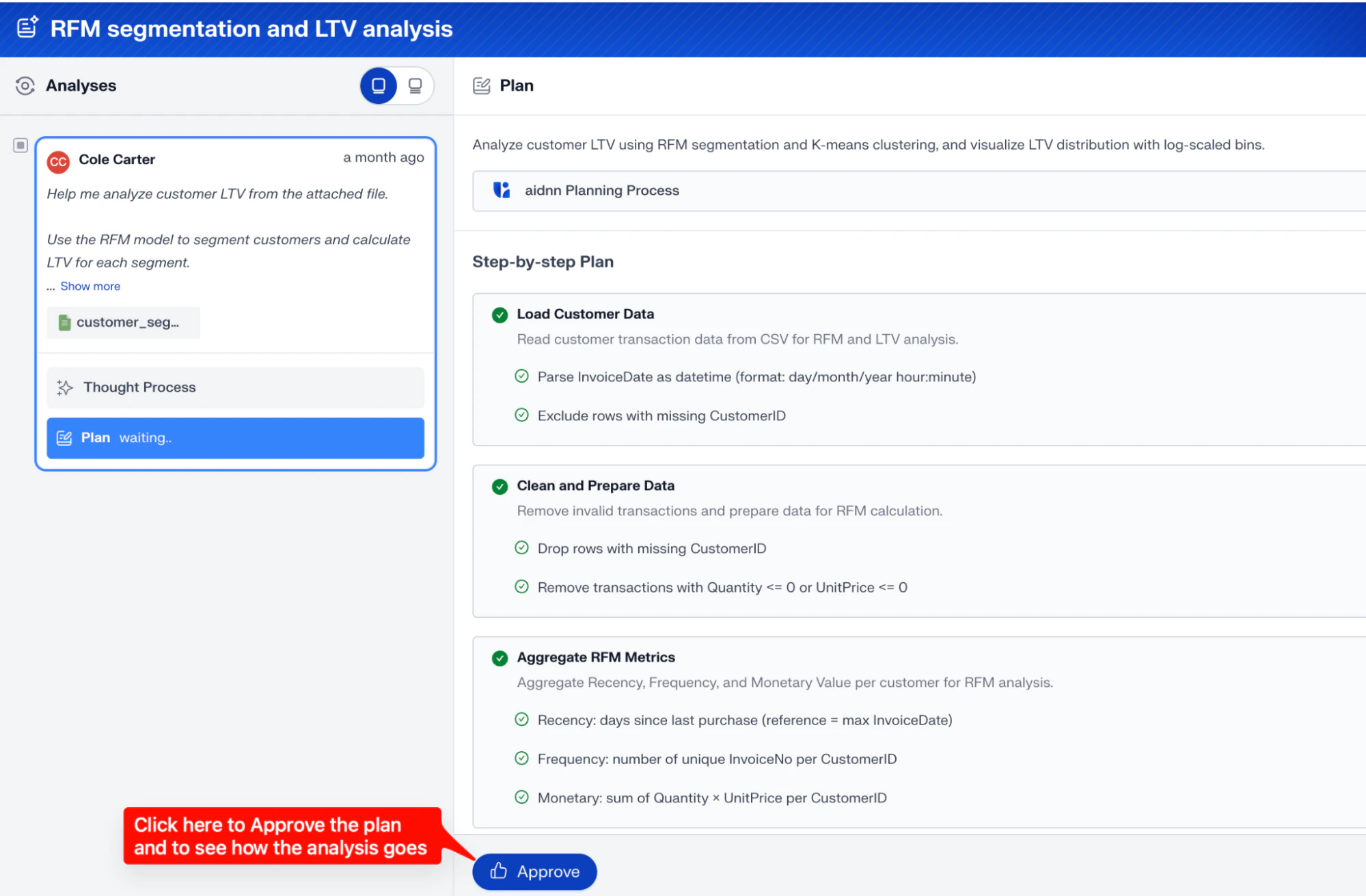 At this point, aidnn will ask you to either Approve the plan