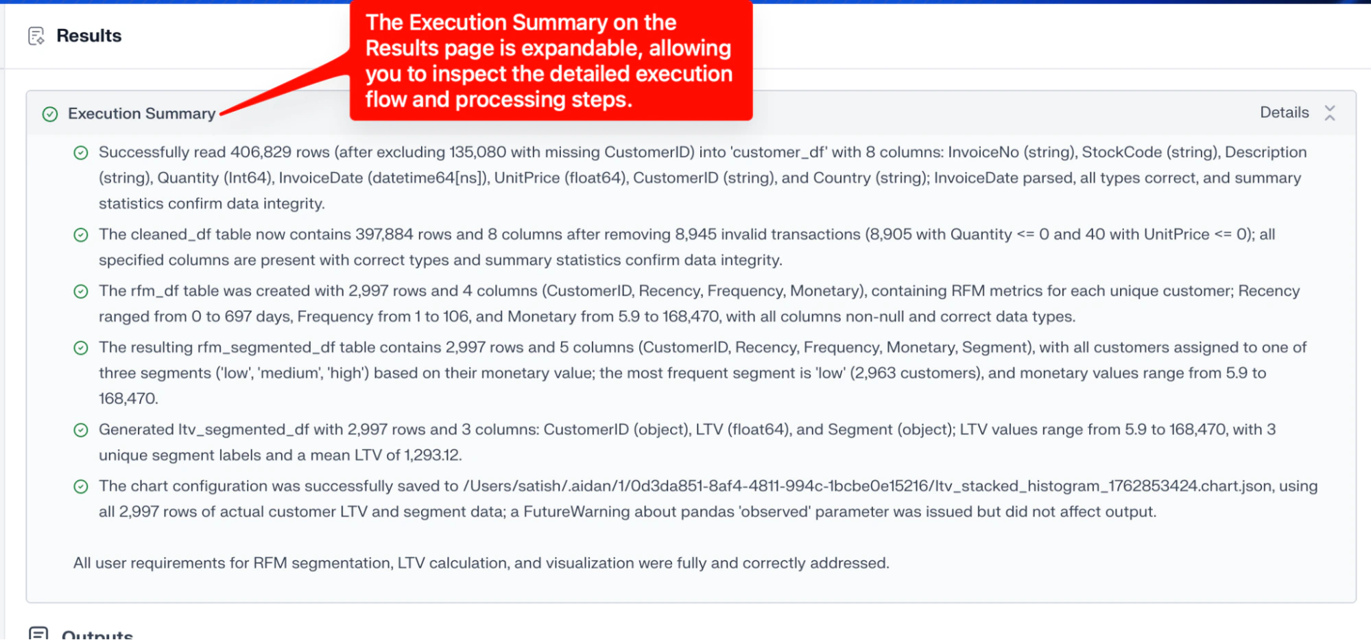 - Visualization Output: A quick summary of the charts aidnn created and how the data is displayed.